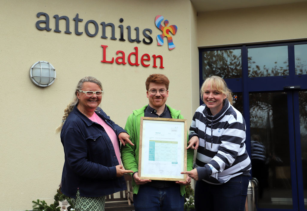 „Mit dem Bilanzierungsprozess hält man sich den Spiegel vor und schaut genau hin, in welchen unternehmerischen Aspekten man wirklich sozial gerecht und ökologisch nachhaltig handelt. Natürlich hat man immer ein Selbstbild, das kann aber schwammig sein oder ein Stück weit an der Realität vorbei gehen“, erklärt Ladenleiter Carsten Flynn, der sich gemeinsam mit Dr. Uta Anschütz federführend den Gemeinwohl-Ökonomie-Prozess verantwortlich zeichnet. Alleine das eigene Handeln genau zu analysieren und es am Ende strukturiert wie in einer Finanzbilanz vor sich zu sehen, sei aller Mühe wert. Eben dies sei der Hintergrund gewesen, warum man sich der Gemeinwohl-Ökonomie angeschlossen habe, betont Christian Bayer, Geschäftsführer antonius: gemeinsam begegnen. Es geht nicht alleinig um die Punktzahl der ersten Bilanz, sondern den Weg als Ziel zu begreifen. Denn auch der hauseigene Bio-Laden kann sich noch verbessern.