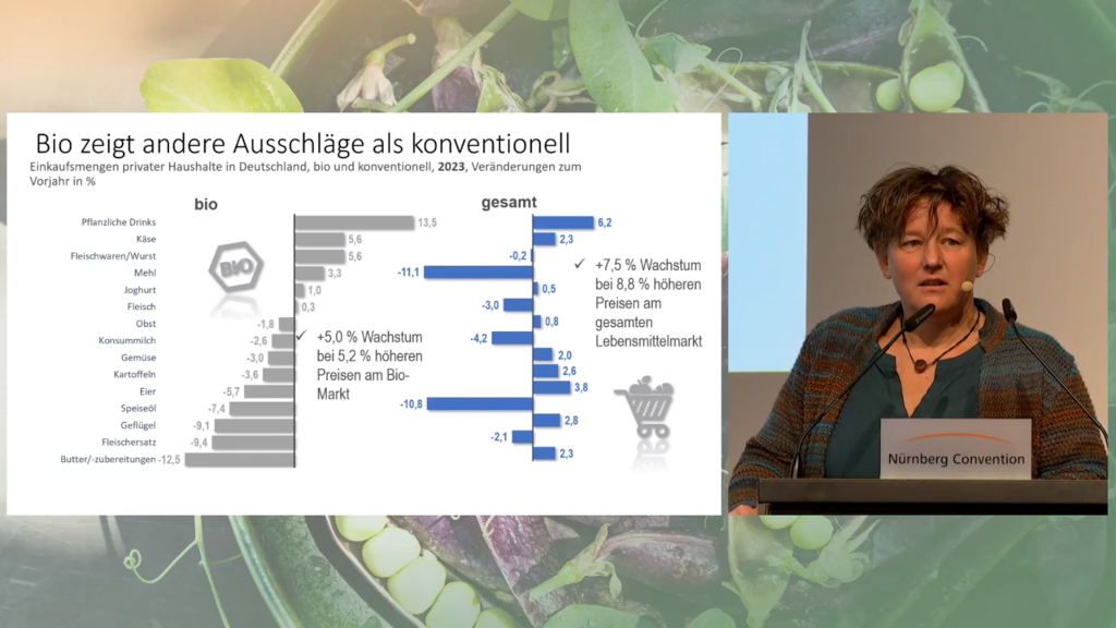 Großer Gewinner ist der konventionelle Lebensmitteleinzelhandel inklusive Drogerien, der seinen Umsatz um 7,2 Prozent auf 10,82 Milliarden Euro steigern konnte. Mit 3,15 Milliarden Euro stagniert der Bio-Fachhandel nahezu auf dem Niveau von 2022. Für die 1,8 Prozent Zuwachs bei den sonstigen Verkaufsstätten auf 2,11 Milliarden Euro zeichnet sich laut Schaack vor allem mit Bäckereien und Metzgereien das Handwerk verantwortlich. Direktvermarkter hätten hingegen lediglich auf den Wochenmärkten zulegen können. „Unter dem Strich kommen wir aus der Krise heraus. Die Bio-Branche bleibt auch unter schwierigen Voraussetzungen stabil“, zeigte sich Tina Andres, Vorstandsvorsitzende Bund Ökologische Lebensmittelwirtschaft, erwartungsgemäß positiv gestimmt.